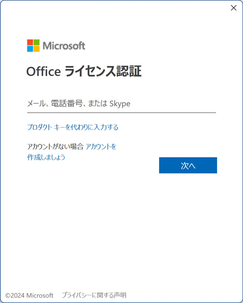 ECCS端末のWindows環境で,Word,Excel,PowerPoint等いずれかのOfficeアプリを起動してください.ライセンス認証を求めるウィンドウが表示されたら「サインイン」をクリックしてください.