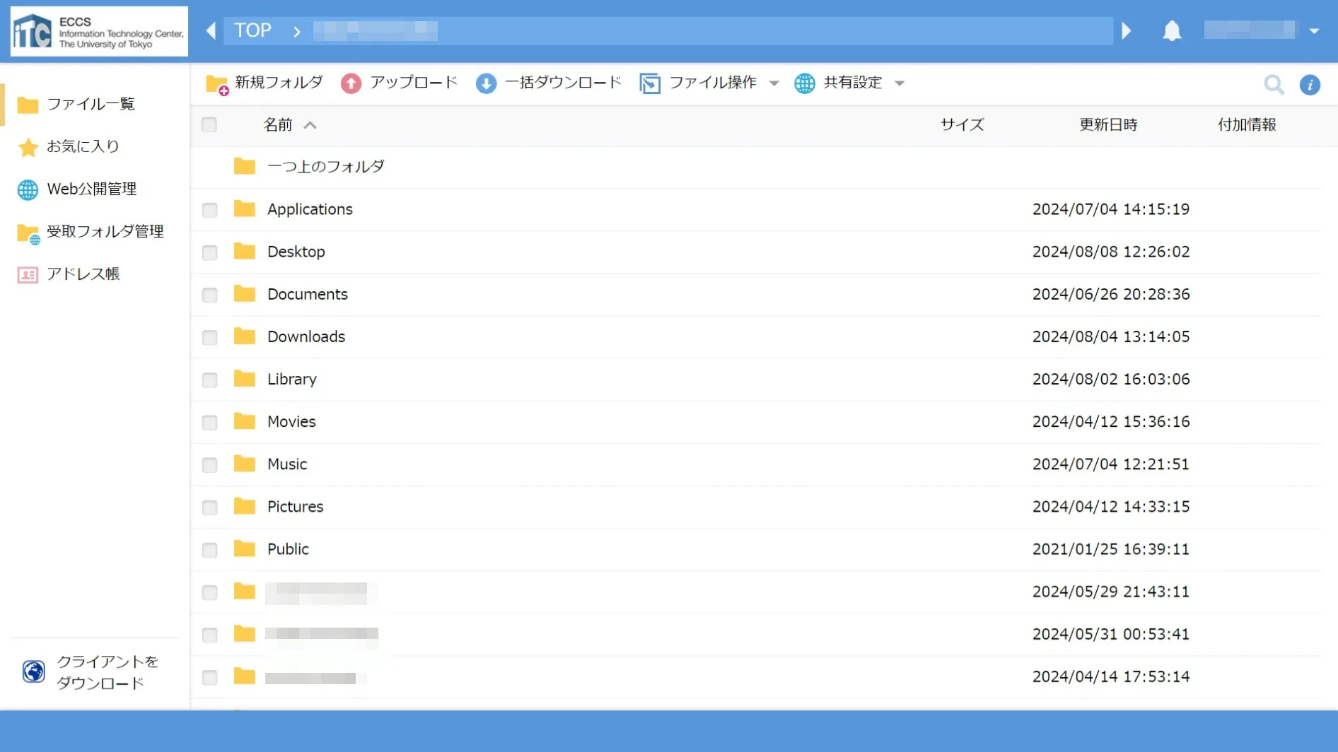 3. 選択した環境のファイルが表示されます.表示されているフォルダを選択すると,そのフォルダの内容が表示されます.