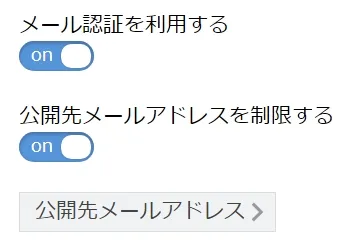 メール認証を行うには,Web公開・受け取りフォルダ機能の設定画面で「メール認証を利用する」をONにしてください.