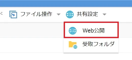 2. 一覧の上部に表示されている「共有設定」を選択して「Web公開」を押してください.画面サイズによってはアイコンのみが表示されます.