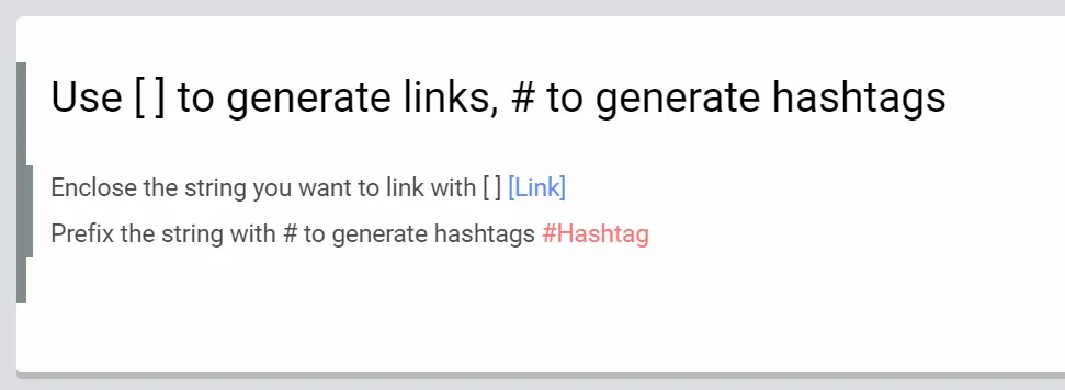 You can automatically generate links by enclosing the string you want to link with [ ], and hashtags by prefixing the string with #.
