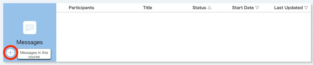 - Click the ”+” button of the “Messages” section on the course top screen to go to the “Messages” screen. You will now be able to create a new message.