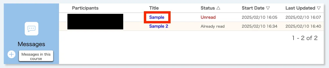 You can find new messages from the “Messages” section of the “Course Top” as follows: