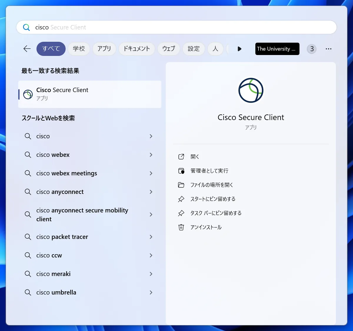 まずはUTokyo VPNに接続するために必要なアプリケーション(Cisco Secure Client)をインストールします.