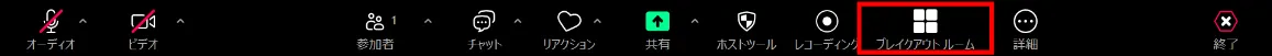 - ミーティング画面下部にある「ブレイクアウトルーム」を選択してください.